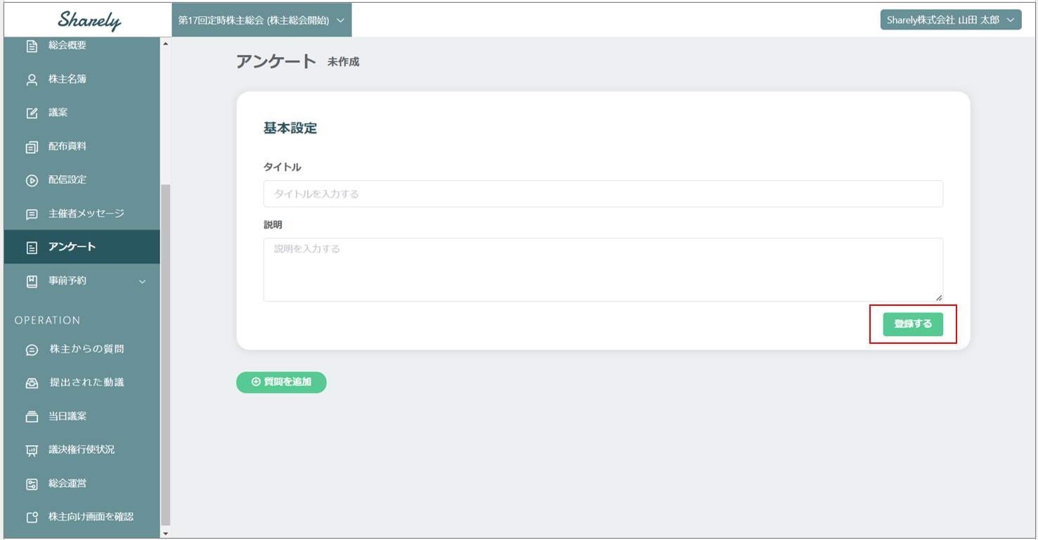 タイトルと説明を入力し、「登録する」をクリックしてください。