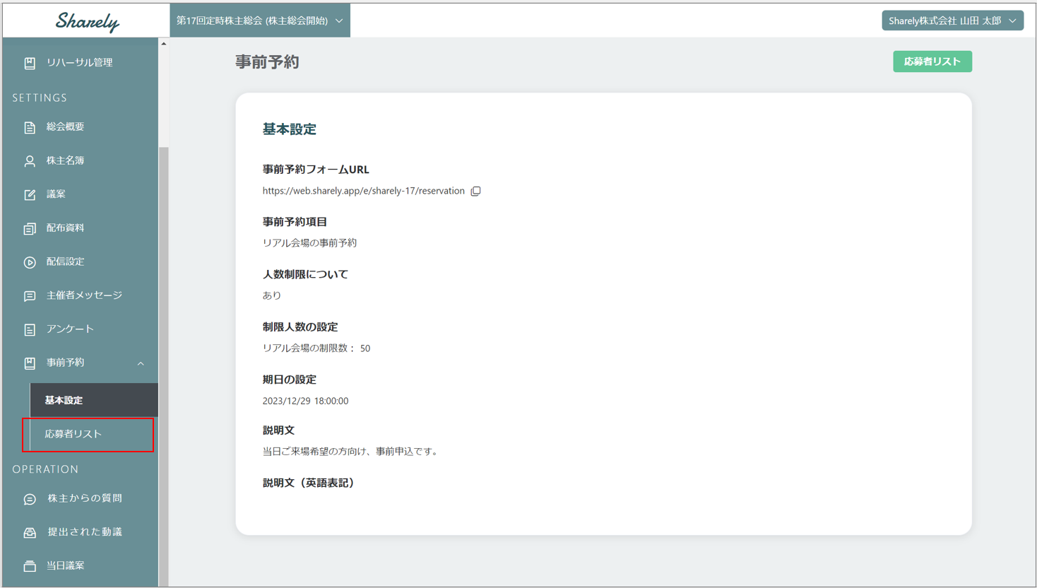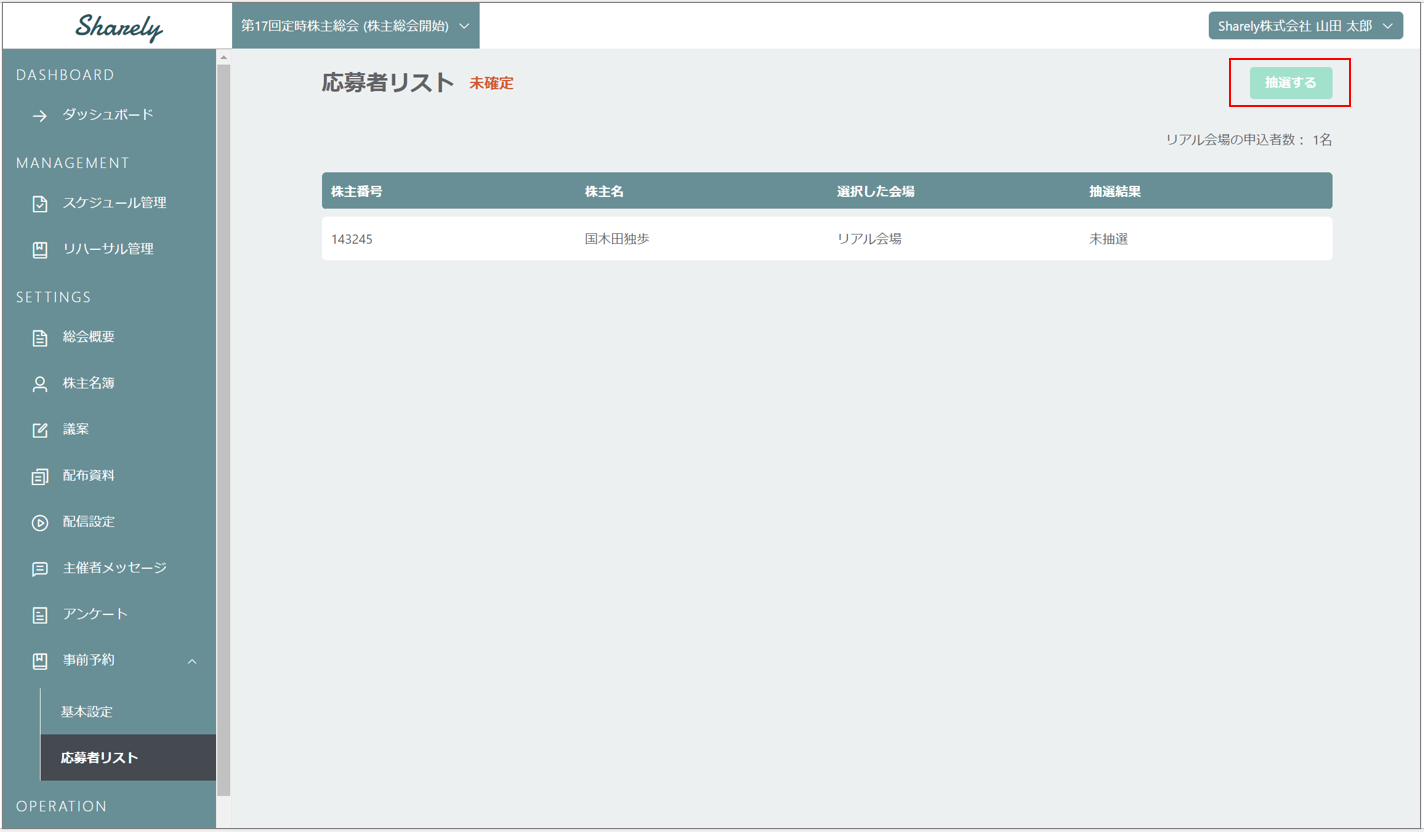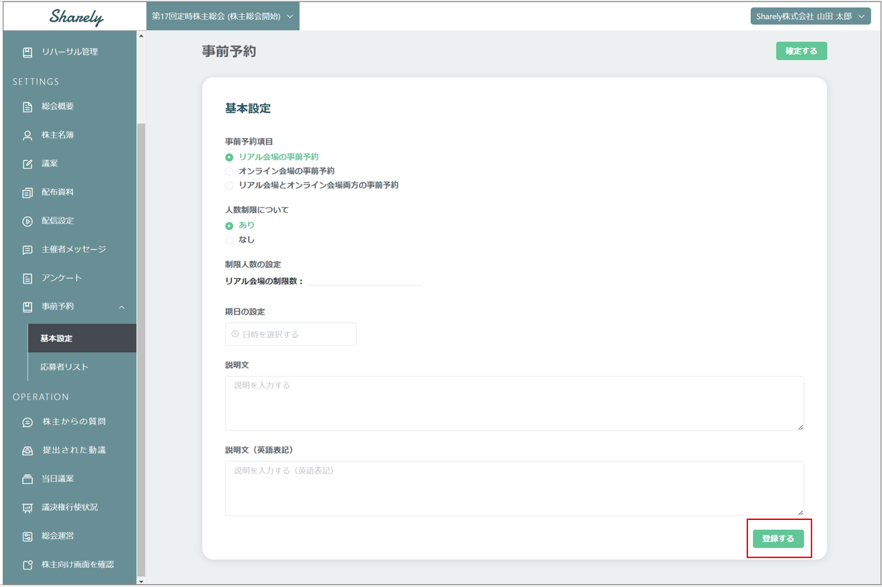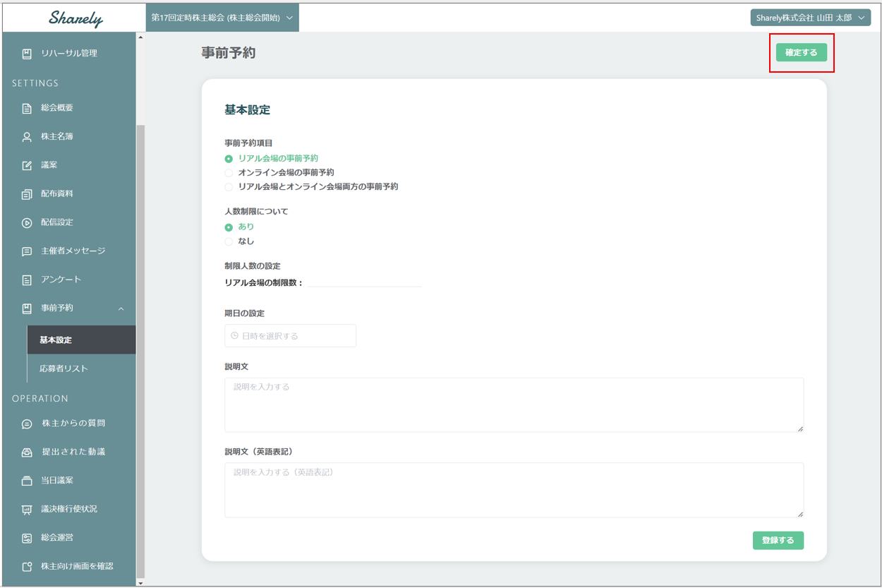 確定するボタンをクリックしない限り株主様は事前予約はできない状況となっております -